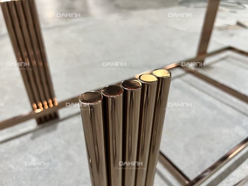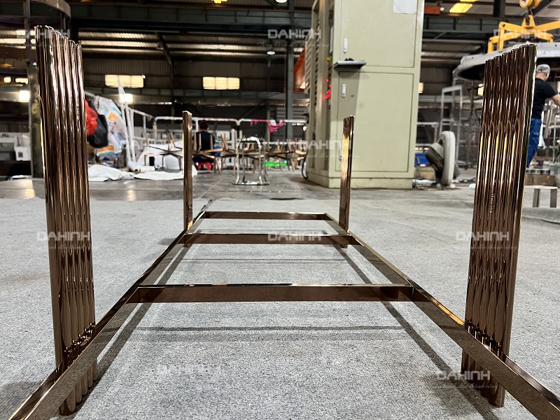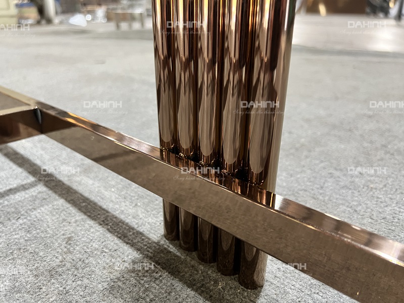 Mỗi chiếc chân bàn inox đều được gia công tỉ mỉ bằng công nghệ mạ PVD hiện đại, đảm bảo lớp mạ đều màu, không bong tróc và bền bỉ cùng năm tháng.