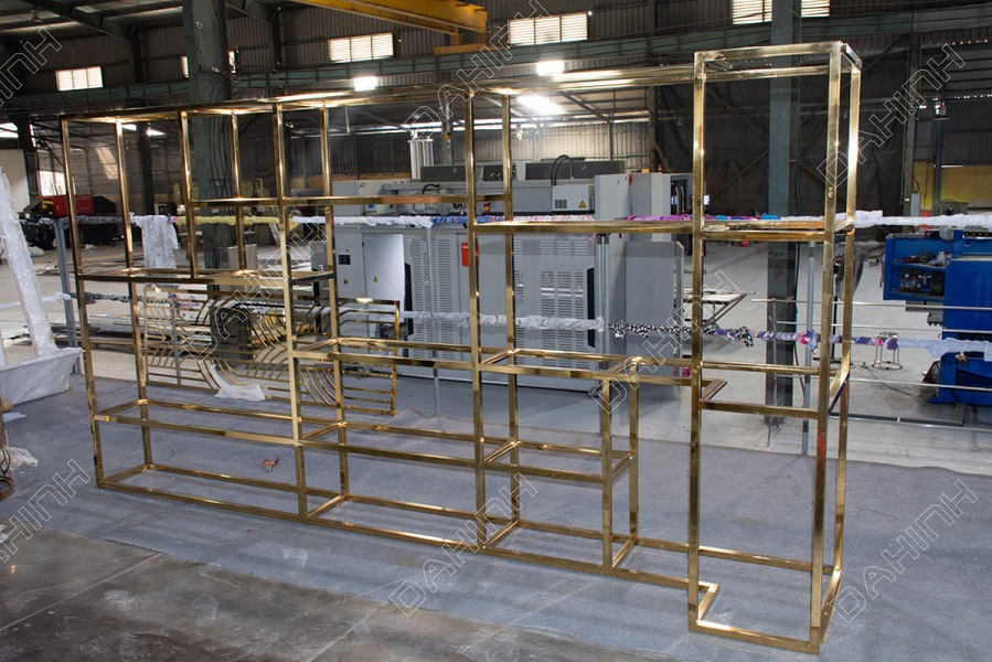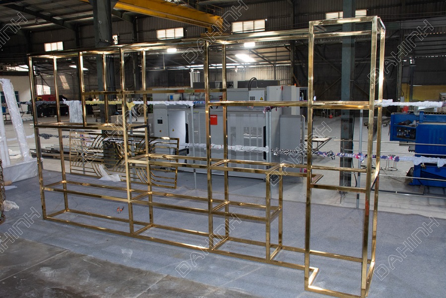 Mẫu kệ inox 4 tầng mạ vàng cao cấp có thiết kế đơn giản nhưng vẫn toát lên vẻ đẹp sang trọng và tinh tế.